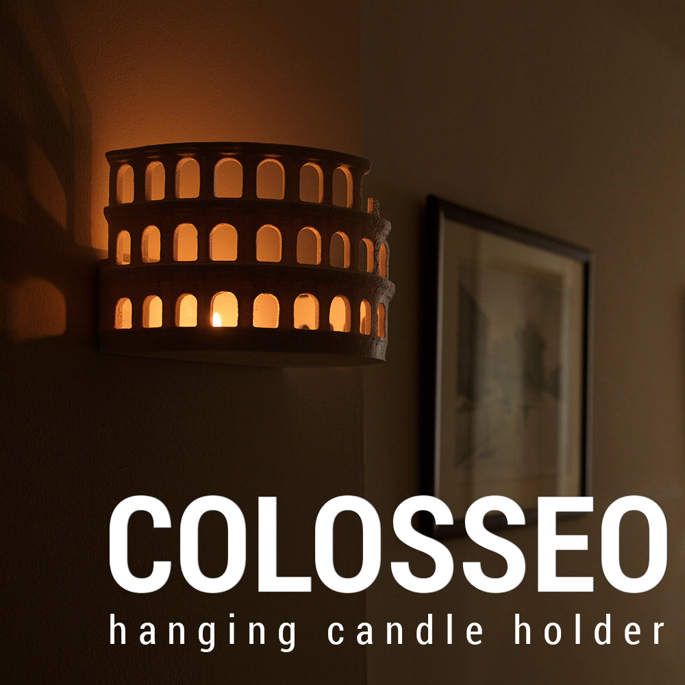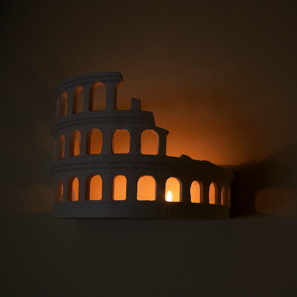 Un diseño que rinde homenaje a la grandeza de la arquitectura clásica. Este portavela de pared, inspirado en el Coliseo Romano, transforma cualquier espacio en un rincón lleno de historia y elegancia. Su estructura reproduce los emblemáticos arcos del anfiteatro, permitiendo que la luz de las velas tealight se filtre y proyecte un resplandor cálido, evocando la atmósfera majestuosa de la Roma antigua.