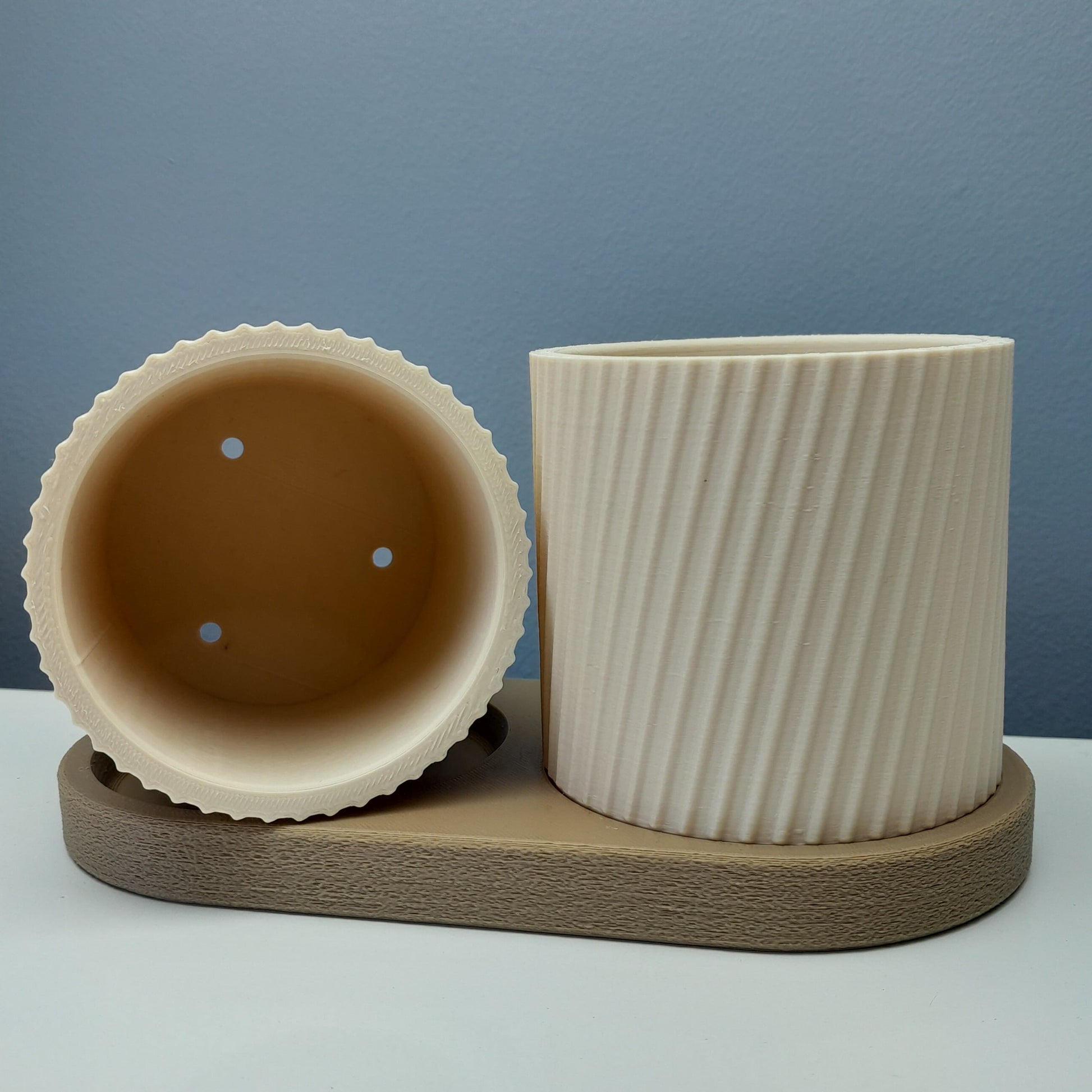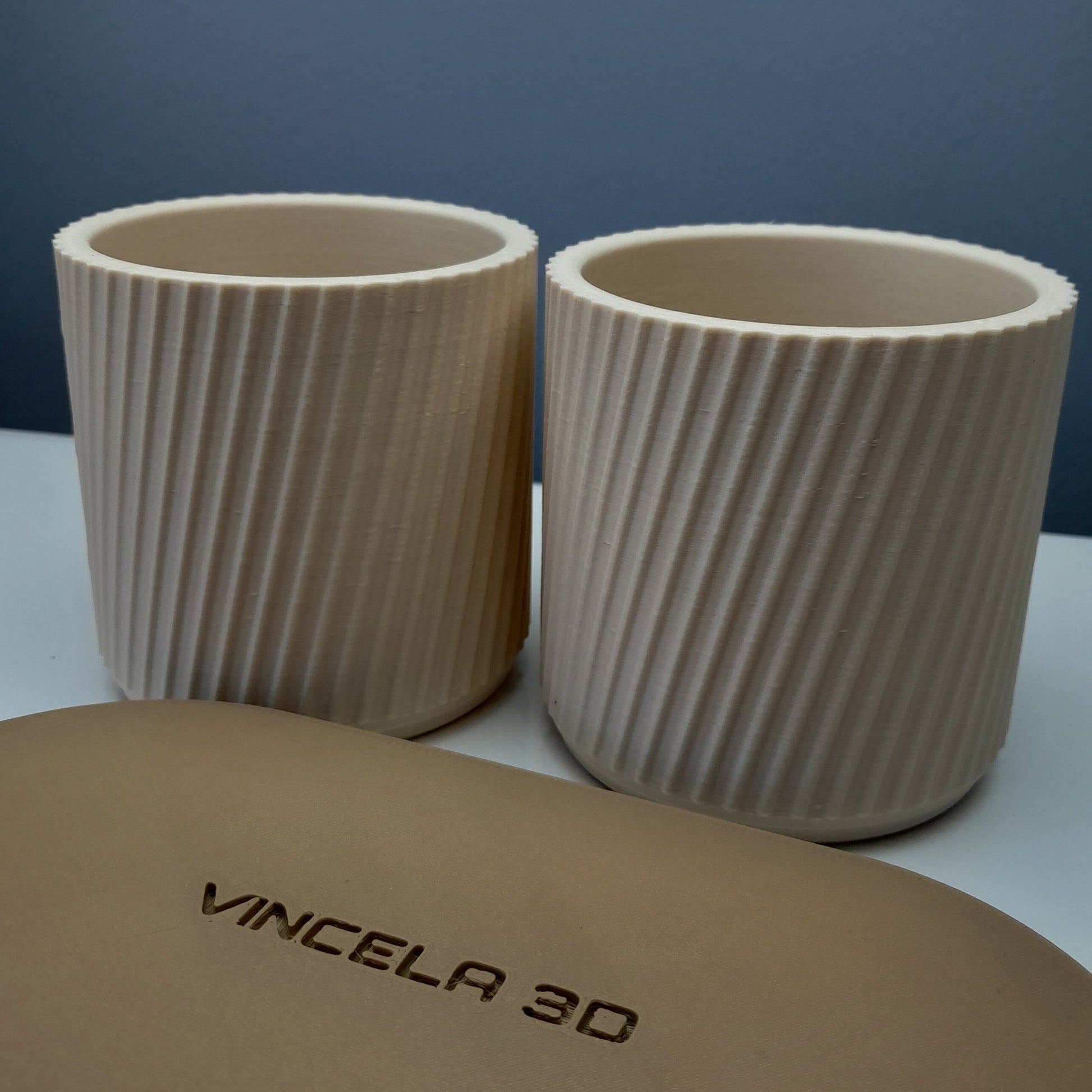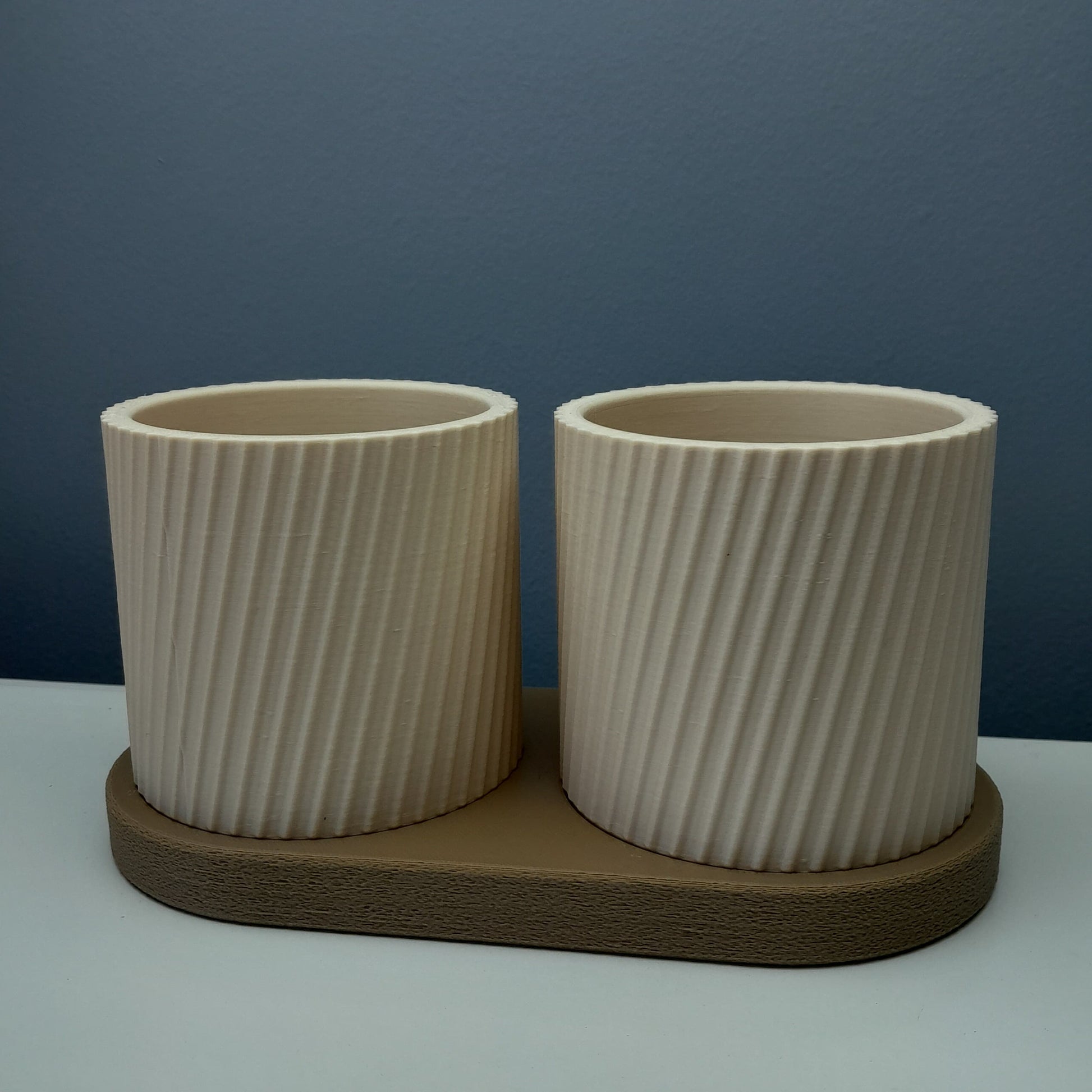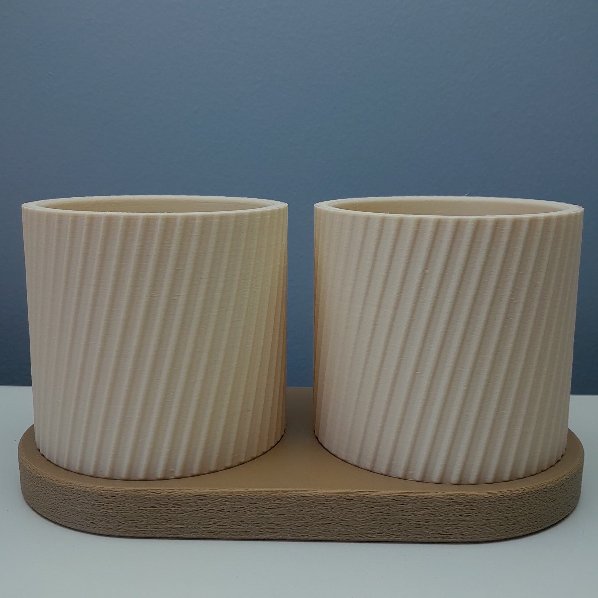 El Set Doble Estriado combina funcionalidad y diseño moderno en una pieza práctica y decorativa. Con su patrón estriado en diagonal y una base firme, este set es perfecto para organizar lápices, pinceles, brochas o incluso como mini maceteros para plantas pequeñas.